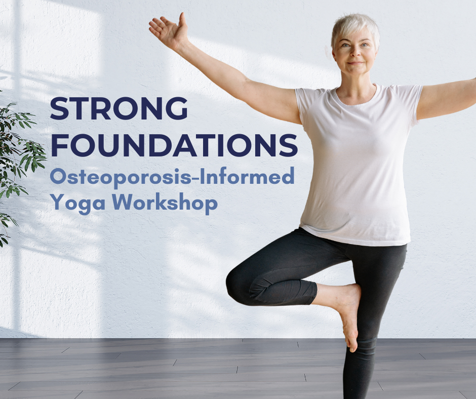 We’ll explore osteoporosis-informed yoga practices designed to support strength, balance, and healthy posture. Movements are taught with bone safety in mind and adapted so you can feel confident in your body and your practice.